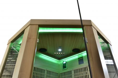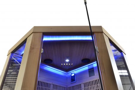 Для истинного наслаждения в кабине установлена система цветотерапии и встроенный музыкальный проигрыватель с цифровым пультом управления. Во время сеанса вы можете слушать любимые композиции и релаксировать.
